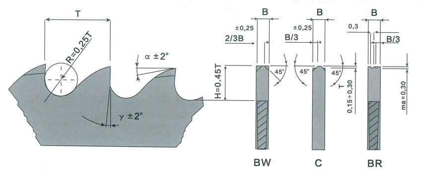 圓鋸片按照下列標準角度的要求制造 | HSS-DMo5 HSS-Co5 Y=18±2o y=12o±2o A=10o±2o a=8o±2o |